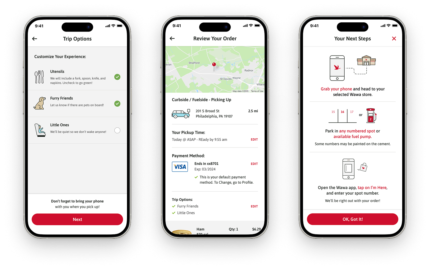To compete with drive-thru experiences, Wawa needed to implement a new service using the existing mobile app and store infrastructure. Customers can select from delivery options that matter as they navigate a clean, expected e-commerce checkout experience fit for a love brand.